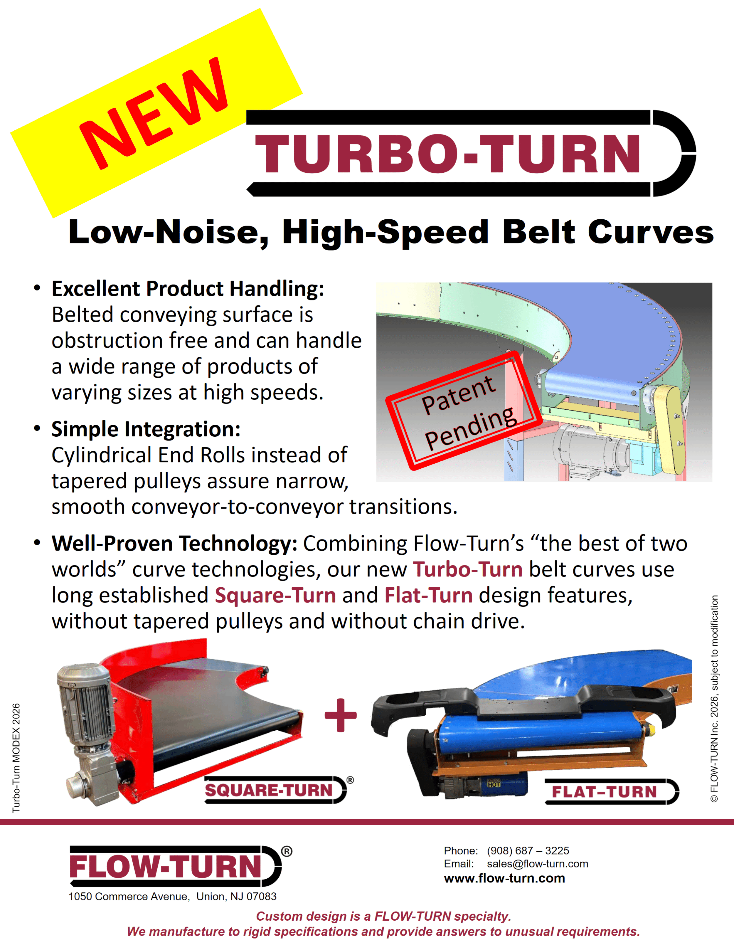 Our Flow-Turn team will showcase a selection of our most innovative products, including Turbo-Turn, Mod Belt-Turn, Flow-Lift, Flow-Gapper, SKR Conveyor, Flow-Merge FMSB, Zone-Turn and Square-Turn. We are ready to discuss how these products can enhance your supply chain and manufacturing systems.